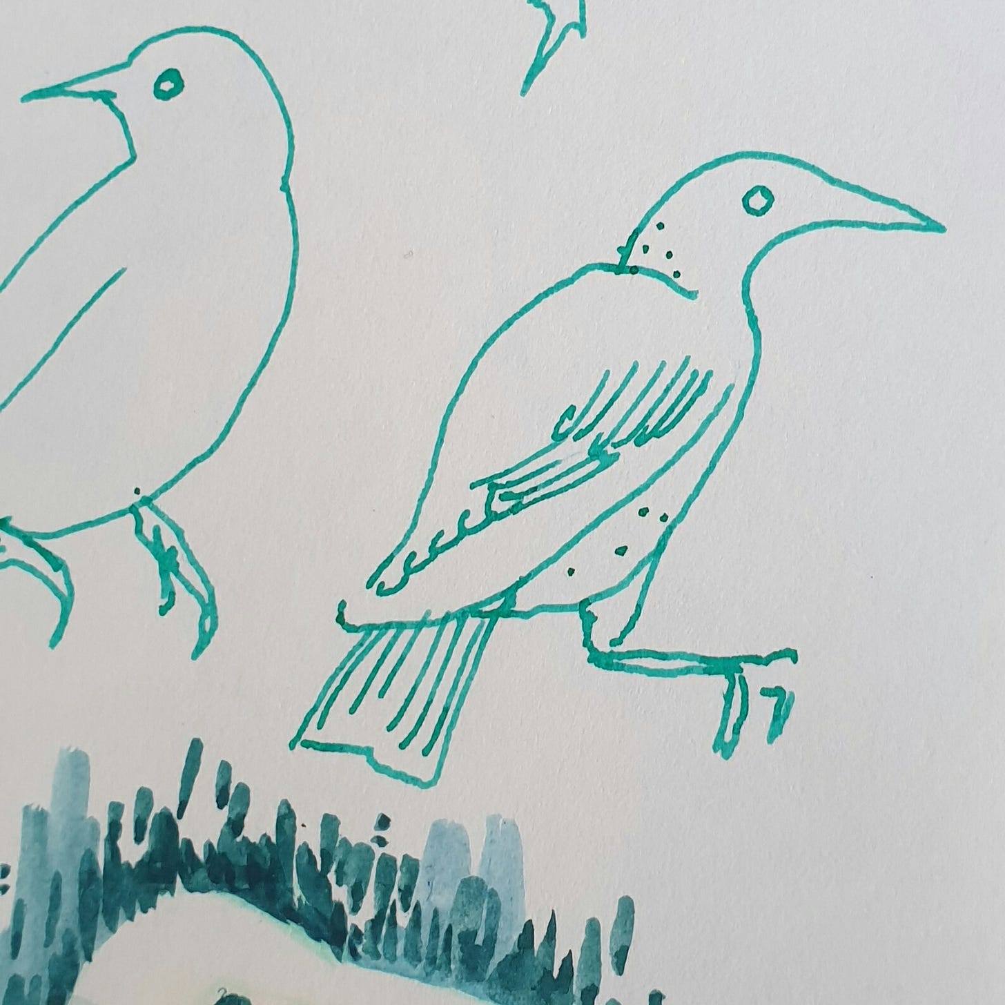 Initial sketches using my Lamy Safari fountain pen with turquoise ink. It somehow makes things less scary, less formal when putting a mark down on the page.