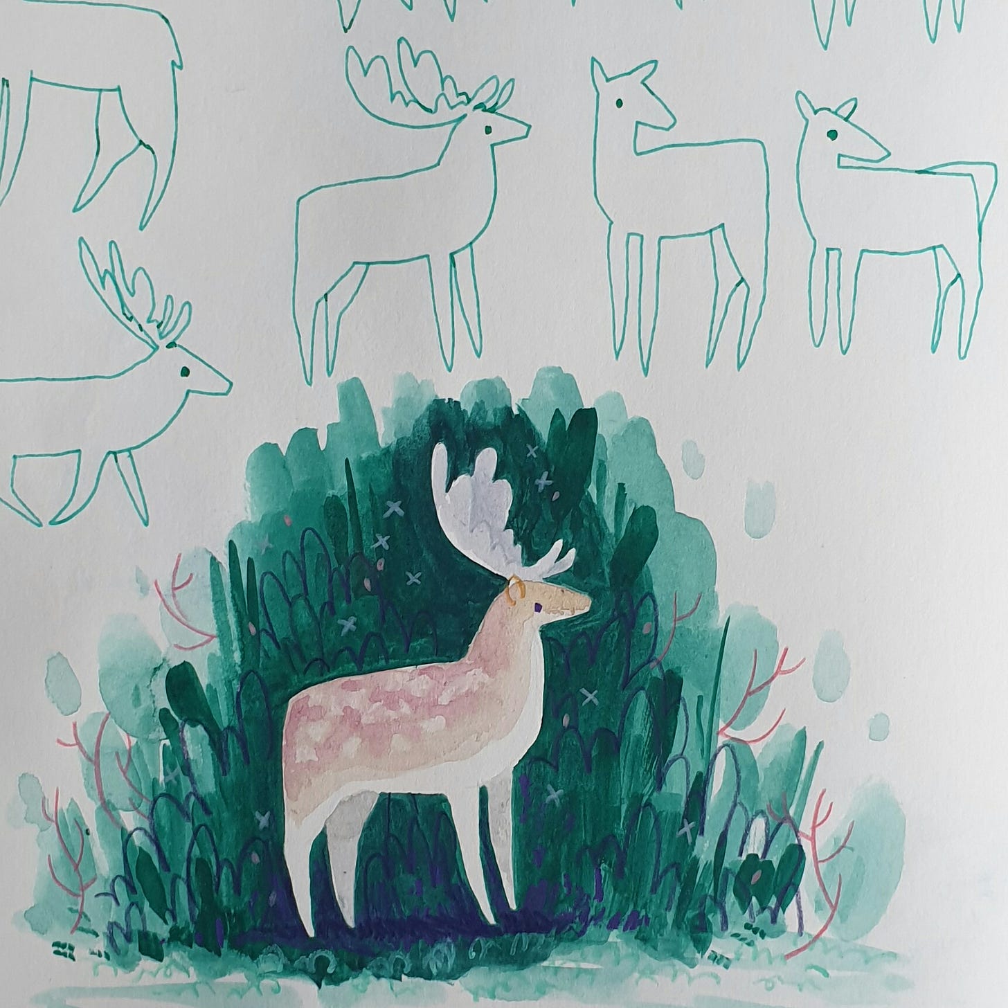 Changing approach after seeing a note by Rosalie Haizlett talking about drawing from imagination and memory first in her project. Day 4 I started with my own ideas of a Fallow deer and then tweaked it by looking at a few photos and came up with what I feel is a gorgeous shape I'd like to do more with in the future.